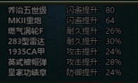 126第一舰队中舰船豪号属性怎么样?豪号,前期一个非常好用的肉盾型战舰,金色战舰,并且在造船厂也是很容易出的一个战舰,前期可配。 战舰性质:前期肉盾 攻击方式:攻击敌方单体 所属国家:英国 升星技能: 前三回合必定不会被暴击 前四回合提升舰船自身的防御效果 前四回合闪避后,舰船自身回复耐久 提升舰船自身的耐久 舰船奇缘: