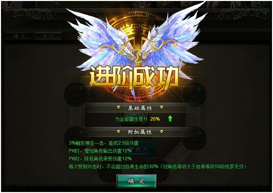 游戏中玩家们都想拥有一对漂亮的翅膀神翼,神翼不仅仅只是外观好看,还能给玩家们增强战斗力。那么,游戏中玩家们对神翼系统了解吗?下面不妨随小编一起来看看吧。绚丽外观,带来超高属性,还可增加角色输出伤害并且同时再降低角色所承受伤害,战翼——你值得拥有。玩家等级达到60级,通过点击游戏主界面右下角“战翼”功能按钮,即可打开战翼界面。玩家可以通过以下两种方式获得战翼。1.VIP商城购买2.首充获得战翼可以进行强化,一共10阶,每阶都有不同的酷炫外观,其次,战翼在除了增加人物战力之外,他和坐骑一样都是有附加特殊属性的,尤其在PK的时候,战翼可以增加角色输出伤害并且同时再降低角色所承受伤害,另外在攻击时有几率触发造成2.5倍伤害的神圣一击。还没有完,在小于玩家自身等级50级之内,每次受到攻击时不会超过自身30%的生命。不得不