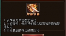 141游戏中拥有众多游戏活动,玩家们可以在这里参加各种活动来获取丰富的奖励与装备。那么,游戏中的帮会争霸你了解吗?下面不妨随小编一起来看看吧。《大话女儿国》帮会争霸 一朝成战友,生死一家人。为自己,为了帮会而战!每周一、二、四、六、日20:00开启活动。活动开始后,会在界面右下方弹出提示面板,点击即可打开活动页面,也可通过“活动大厅→定时活动→帮会争霸”打开活动界面。 1.活动时间:20:00~20:302.每个有帮派的玩家都可以参加活动3.每个玩家都有一个自己的积分,积分达到不同的阶段可获得相应的奖励4.同一帮派的所有玩家积分相加则为本帮派的积分,帮派积分用来决定最后的帮派排名5.排名第一的帮主可获得一个24小时的限时称号6.每周二、周四排名前十的帮会可获得参加领地战的机会。战斗开始 积分排名规则1.攻击战场旗帜每