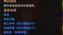 207神龙战士是款非常好玩的魔幻题材的角色扮演页游,游戏中装备升星可以提高玩家战力。那么,装备升星所需要的装备升星石应该怎么获取呢?下面跟着小编一起看看装备升星石的获取方法吧。装备升星石的获取方法:1、商城购买2、神装试炼3、领土争夺4、边境争霸5、练级塔6、功勋商店7、猎魔夺宝中宝箱掉落