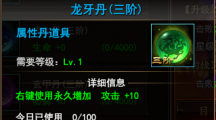 243游戏中大家都知道丹药的重要性,有了它玩家们可以很快的恢复战斗力,这里小编就跟大家说说完美红颜龙牙丹、玄甲丹、虎血丹这些属性丹有些什么作用,怎么获得这些属性丹,一起来看看吧。 龙牙丹(三阶) 需要等级:Lv1永久增加 攻击+10每日使用上限:100累计使用上限:4000获得方法由龙牙丹(二阶)合成 玄甲丹(三阶) 需要等级:Lv1永久增加 防御+10每日使用上限:100累计使用上限:4000获得方法由玄甲丹(二阶)合成 虎血丹(三阶) 需要等级:Lv1永久增加 生命+50每日使用上限:100累计使用上限:4000获得方法由虎血丹(二阶)合成