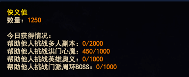 1689剑灵洪门崛起侠义值获取方法有哪些?侠义值是用于游戏中商会-狭义专区兑换特殊道具使用的货币,很有用的,那么侠义值怎么获取呢?下面小编就给大家仔细的介绍一下吧,希望能给大家带来帮助。侠义值目前有以下几种获得方式:帮助他们挑战多人副本每日最多2000点;帮助他人挑战心魔每日最多获得1000点;帮助他们挑战英雄奥义每日最多获得1000点;帮助他人挑战门派周环BOSS每日最多获得1000点;知道获取方式那我们获取侠义就相当于简单的多。所以大家自己的任务或者副本完成之后,大家在被人邀请的情况下能帮助就帮助。侠义值就这么嗖嗖的来了。大家快去帮助他人通关副本或者挑战吧。