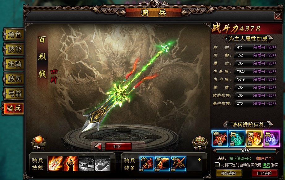 579我是皇中有哪些特色的系统呢?好玩吗?相信很多玩家还摸不着头脑吧对于我是皇中的特色系统吧。那么,接下来,小编就来讲一讲我是皇中的其中的一个,骑兵系统。 1、通过主线免费获得骑兵,获得骑兵后普通攻击伤害提高50%,并且攻击数量提升50%,并增加属性。2、骑兵可以进行培养,培养等级越高可以解锁骑兵技能,并且可以穿戴更多骑兵装备。3、骑兵装备主要通过怪物攻城获得。4、骑兵升至6阶将获得强力的控制技能。 看了上边这篇我是皇骑兵系统攻略,各位玩家是否都了解相关信息了呢?找精彩好玩页游请浏览3DM页游网。
