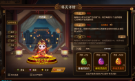 0本次版本,对将灵系统也做了优化调整,具体如下:一、新将灵登场 开放新A级将灵郭嘉、陆逊、S级将灵神周瑜登场,同时关羽和貂蝉特效升级。 二、可以拥有多个将灵 新版本中,玩家可以拥有多个将灵,且没有上限,同时玩家可以选择不同的将灵参与聚宝盆、将灵出征、牌局内展示、大厅展示等。 三、新增唤灵台、将灵商店 在唤灵台中,玩家可以通过购买唤灵宝箱,抽取将灵、将灵碎片等道具。单抽和十连抽都可以获得唤灵值,当唤灵值达到100点后,下一次抽取必定可以获得a级将灵碎片。将灵碎片可以在将灵商店中兑换高级将灵。 四、新增放归功能 玩家可以对不需要的将灵进行放归,注:当将灵只剩一只时不可放归。 五、扩展将灵功能 新版本的将灵将可以用于聚宝盆任务、出征任务、牌局内战斗、大厅展示四大功能,不同的将灵有其不同的技能,配合不同的用途,可以