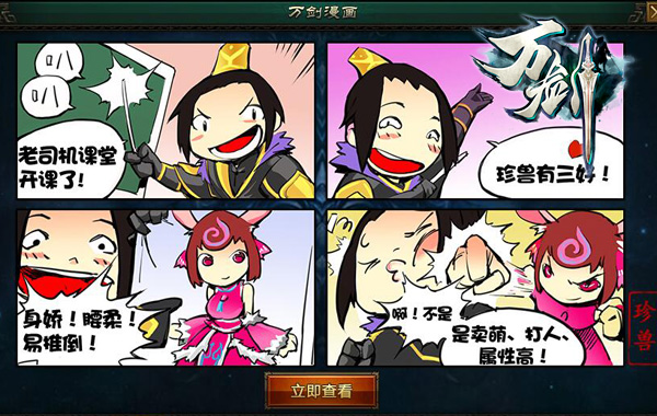 0珍兽能够做什么?除了帮你单刷打架,长得好看帮你装逼之外,它们还能做什么,还能怎么玩?本次,哥们网《万剑》珍兽系统新玩法全面揭秘,不止是养成和战斗,也不止是装逼撑门面,而是一步步将你引入更丰富多彩的剑武侠!今日新服,迅速点击:http://wanjian.game2.cn/ 策略性布阵玩法:三只珍兽同时出战一改网页游戏珍兽“重形态而轻技能,重外观而轻实用”的做法,《万剑》为自家的8大珍兽精心塑造的独一无二的特性和实用价值,其中不仅有专司奶妈的珍兽、擅长加防加攻的珍兽,还有附带霸体、群伤、加移速精准的珍兽,可以满足玩家的各种战斗需要。在特性之外,《万剑》还为珍兽配备了“多只同时出战”设定,并采用“1+2”即一只主战两只辅助,一只阵亡存活珍兽立即接力出战的模式。这就让珍兽布阵充满了策略性,第一只出战的珍兽要主推哪种特